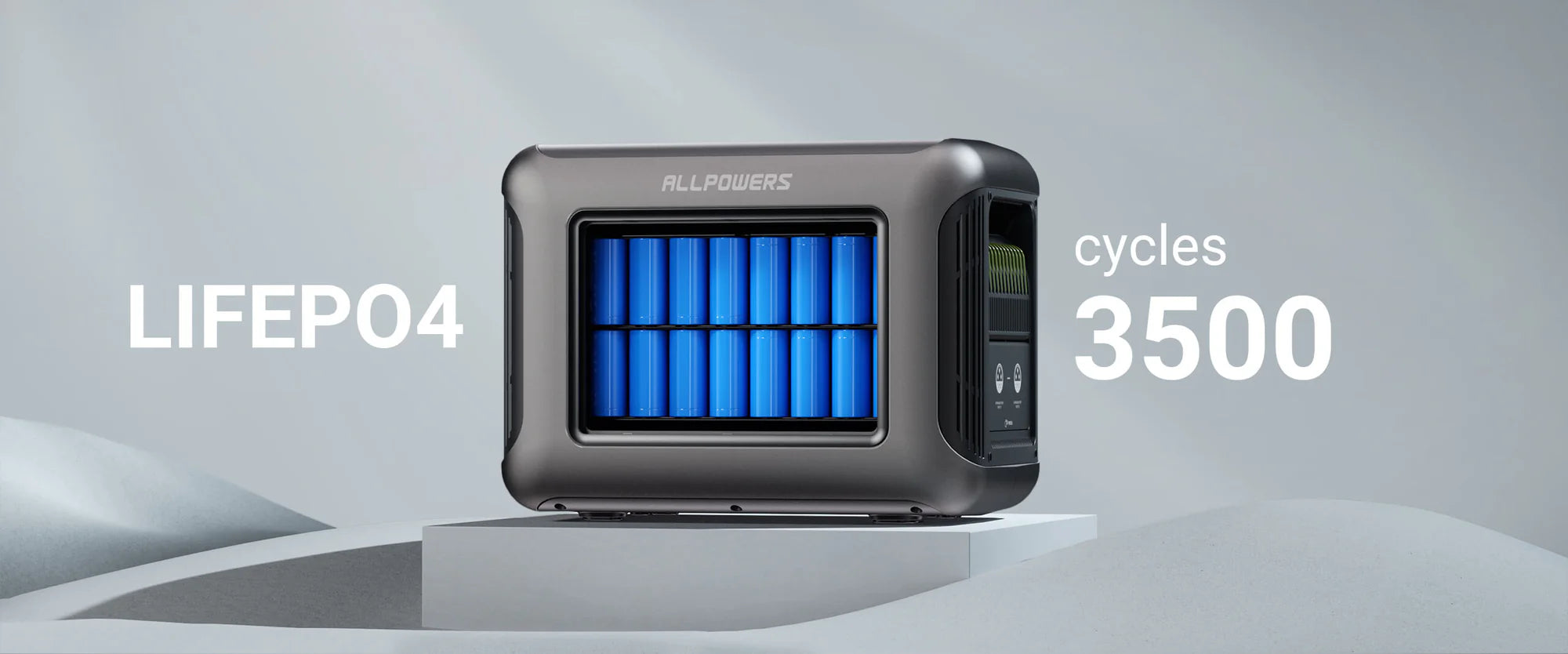 R1500 is equipped with an excellent lithium iron phosphate battery, Due to the low energy density, it is heavier than ternary Li-ion batteries, but has excellent cycle times.Due to our unique technology, the ALLPOWERS R1500 life cycle number exceeds 3500.Even with daily use, it will last approximately 10 years or more.