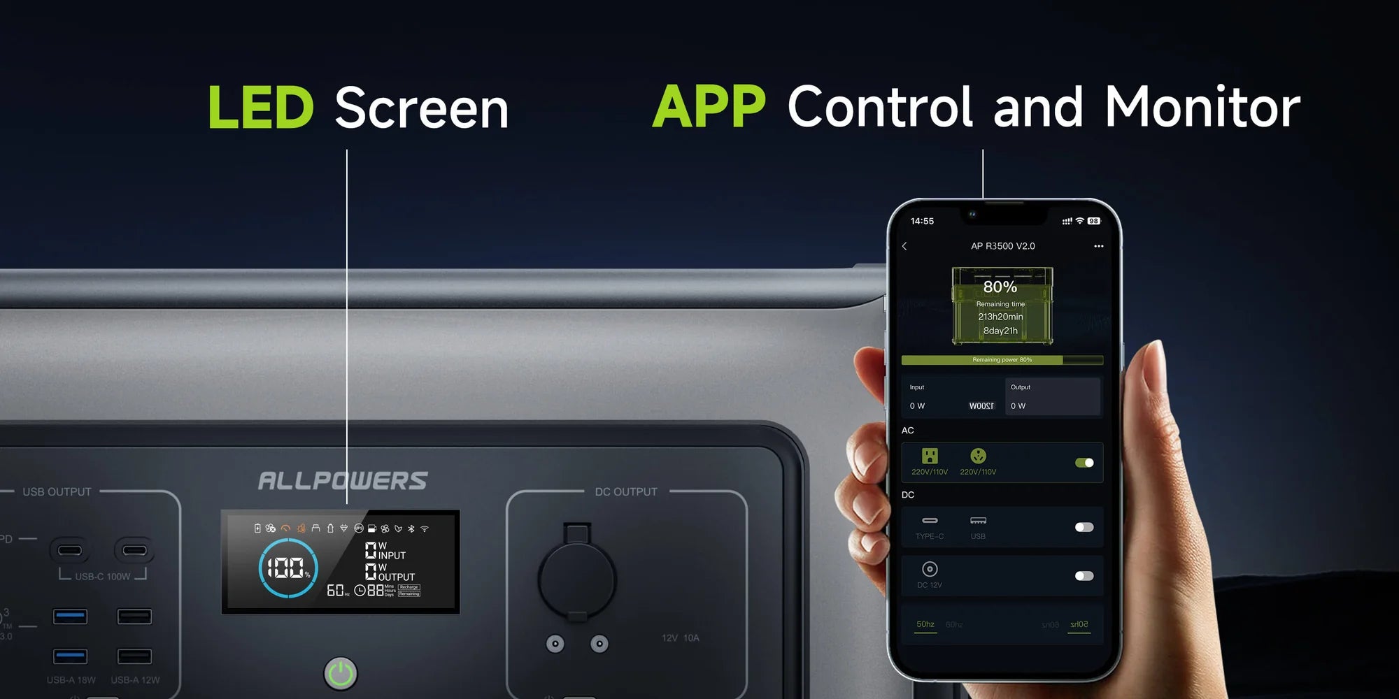 Easy to realize by connecting with ALLPOWERS APP via WIFI power monitoring/function setting/remote control/system upgrade.