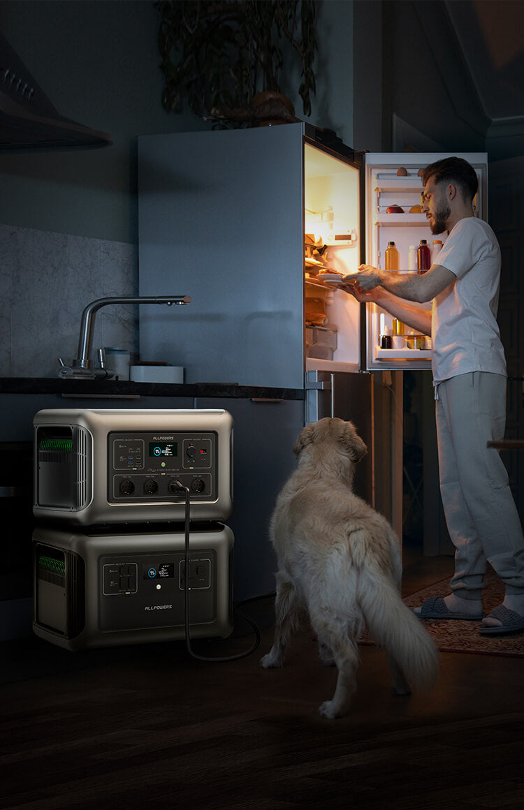 ALLPOWERS R3500 portable power supply is equipped with UPS (uninterruptible power supply). After turning on the UPS function, even if there is a sudden power failure, the connected electrical products will not stop and can be used as they are. There is a momentary interruption when switching, but only 15ms if the switching takes longer.Since the current of an ordinary household AC power outlet is 15A, the maximum output power is 1500W when using UPS mode.