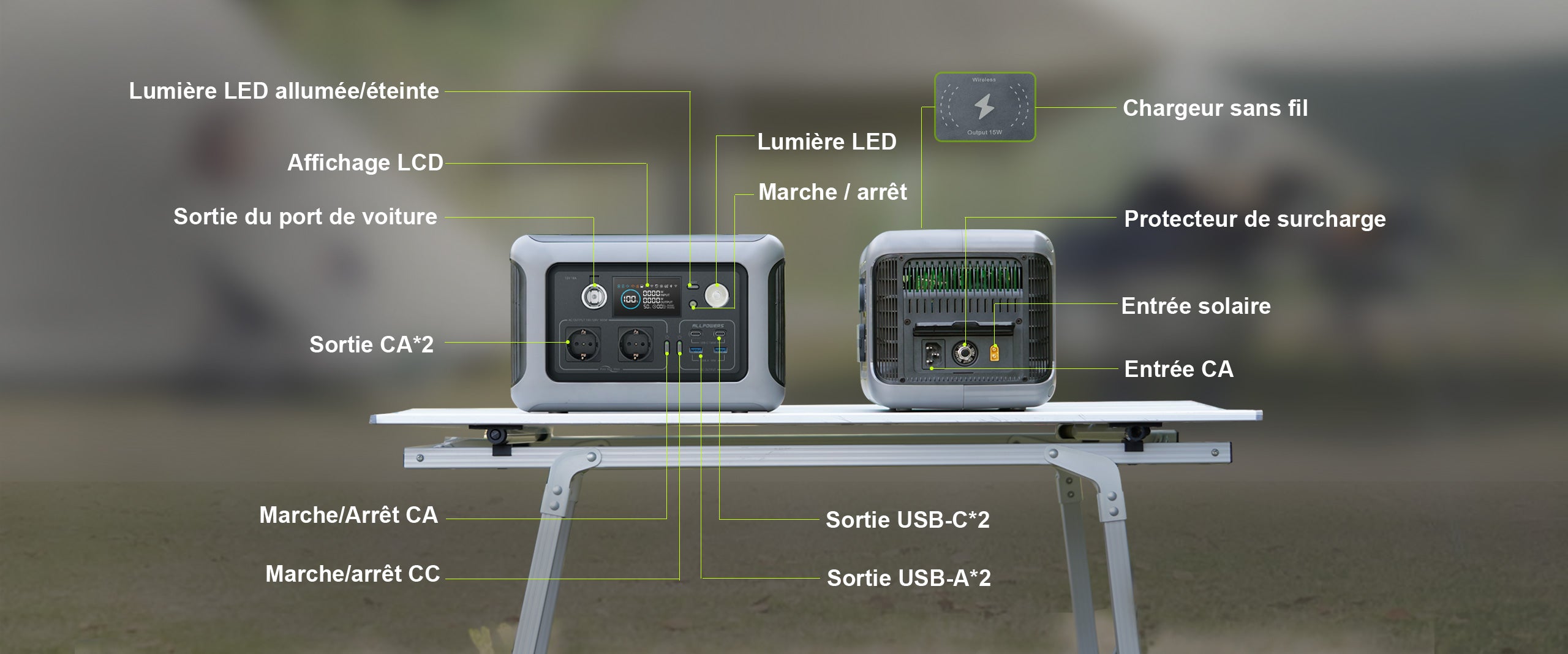 ALLPOWERS portable power station features 2* AC outlets (220V-240v 600W, 1200W Peak), 2 * USB-C ports, 2* USB-A ports and , 1* car cigarette lighter (12V/10A) and a 15W wireless charger . With an output of up to 600W, ALLPOWERS R600 outdoor generator is specially designed for charging kettle, juice, laptops, car refrigerator, drone and other outdoor electronics, power your outdoor adventure without worry.