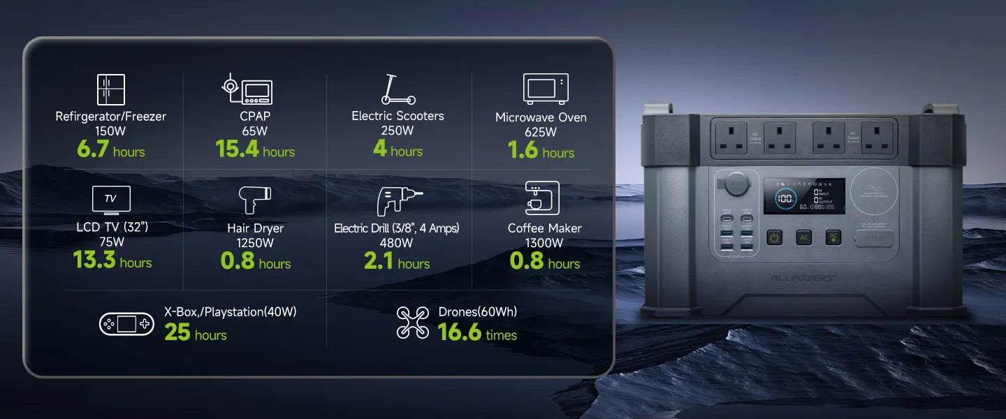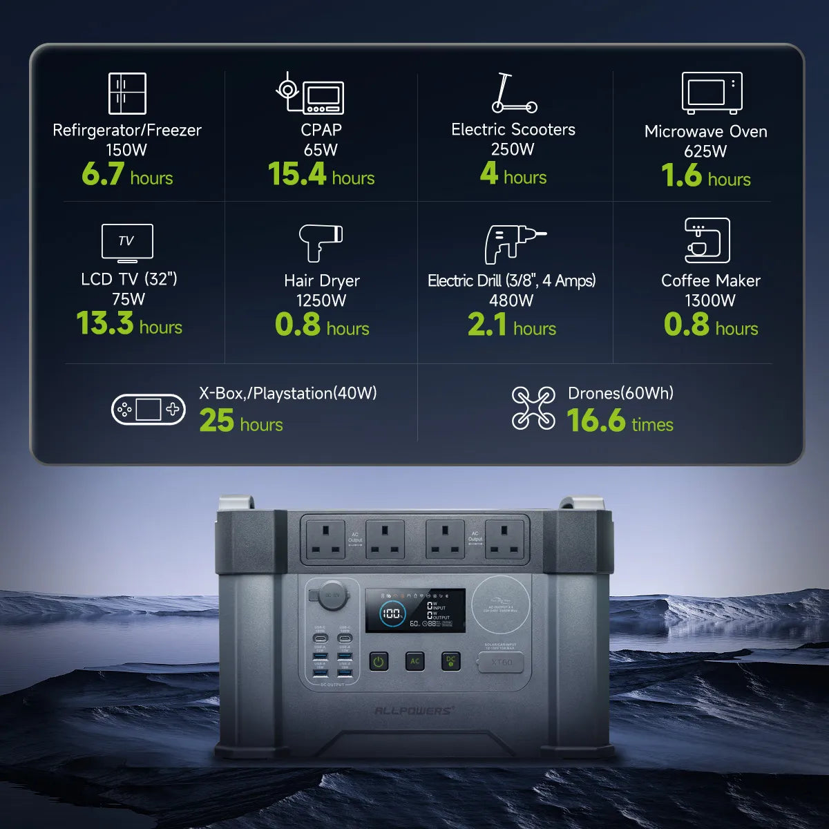 ALLPOWERS S2000 Pro-UK Plugs Sockets Portable Power Station 2400W 1451Wh