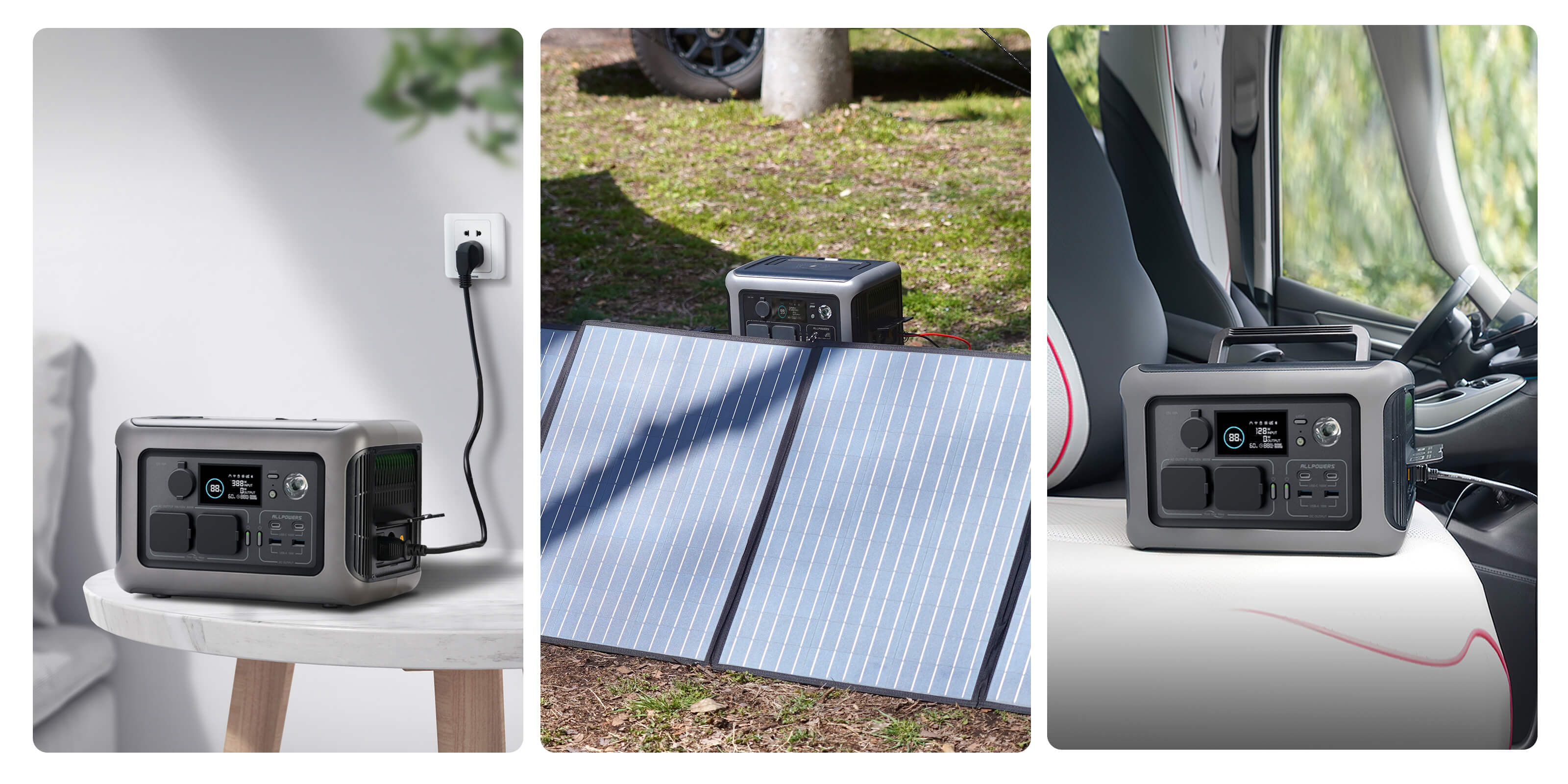 Go for an off-grid living anytime from RV camping to wilderness exploration with no fear of losing power. ALLPOWERS R600 can be recharged in every way possible, either via AC, solar panels, car, leaving you only peace of mind on the road.